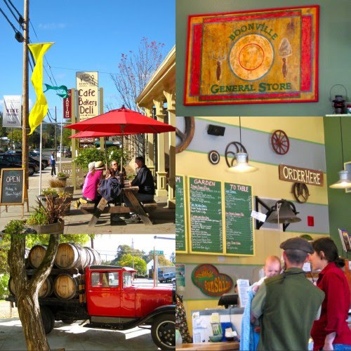 Right across from the Boonville Hotel sits this friendly, bustling café. Don’t let the name fool you. While they do have great provisions for picnics or treats to take home, it’s more a spot for creative, organic meals than it is a place to pick up a gallon of milk. They have cheeses, olives, amazing baked goods, jams, and pestos to grab-and-go for the road. But the idea is to take some time and eat there, either at one of the rustic indoor tables or on the breezy outdoor patio. For lunch, we shared one of the house pizzas and a sandwich of the day.