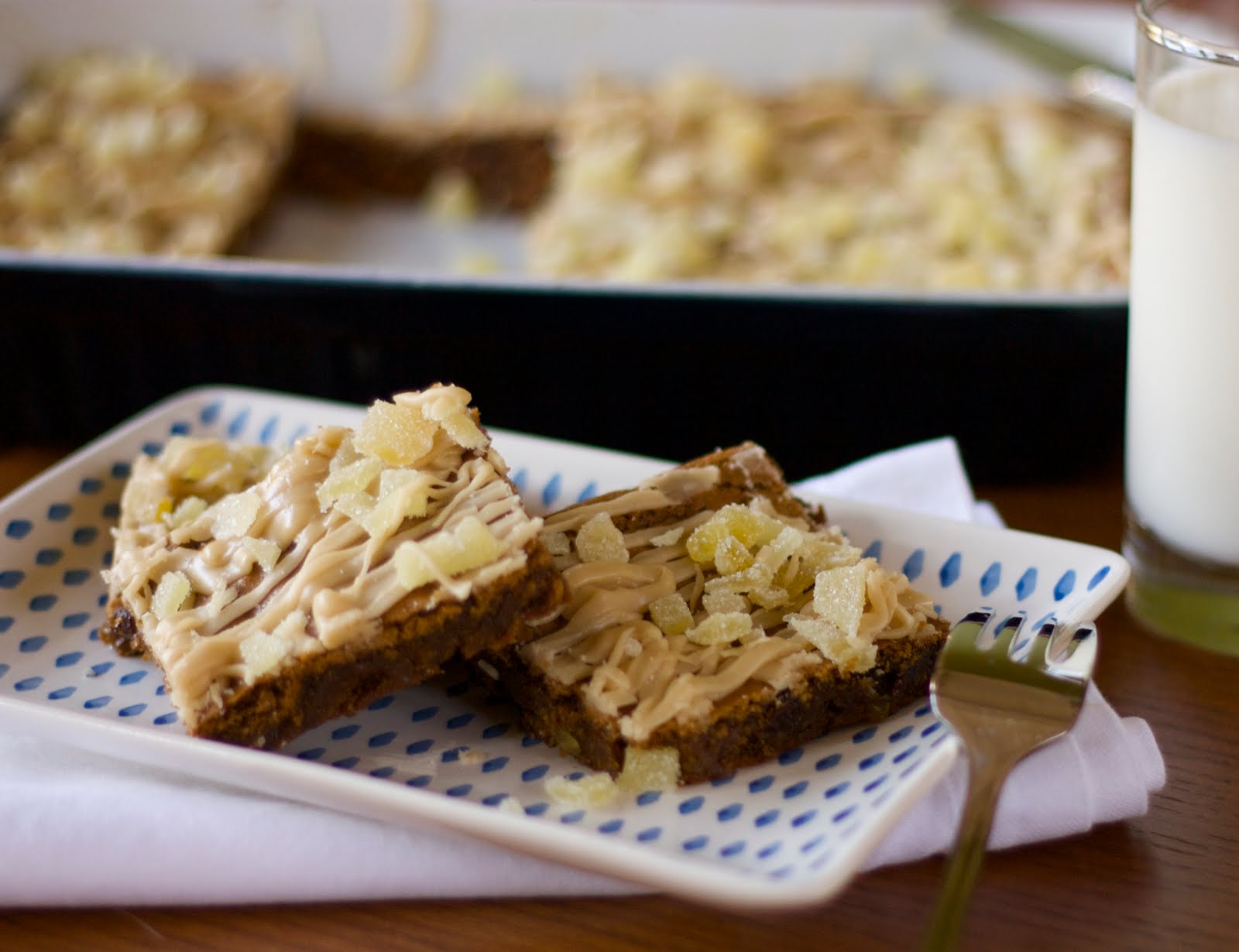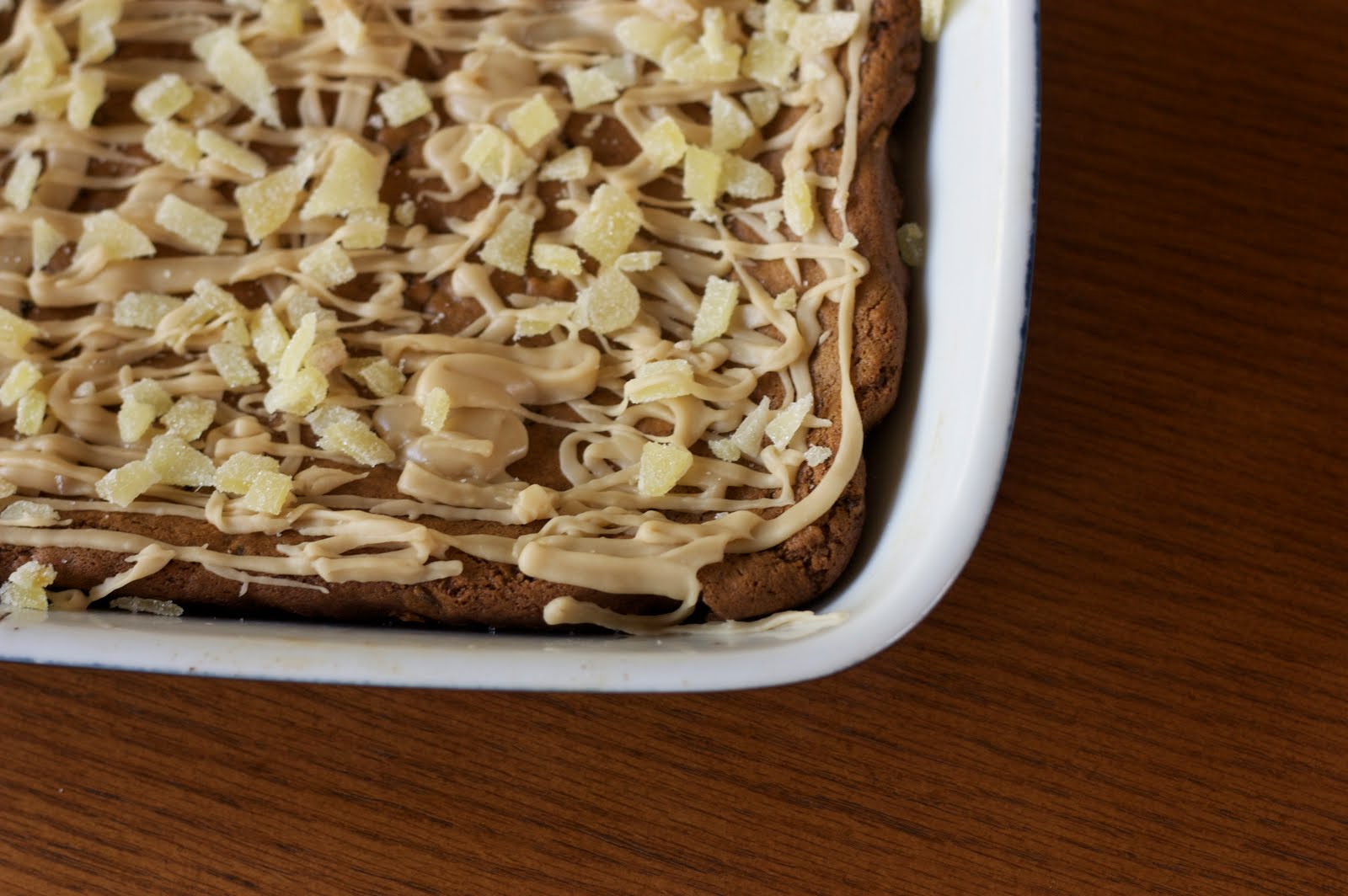 Drizzle with icing, and then sprinkle remaining ginger on top of bars. Let stand until icing has set, then cut into squares and serve.