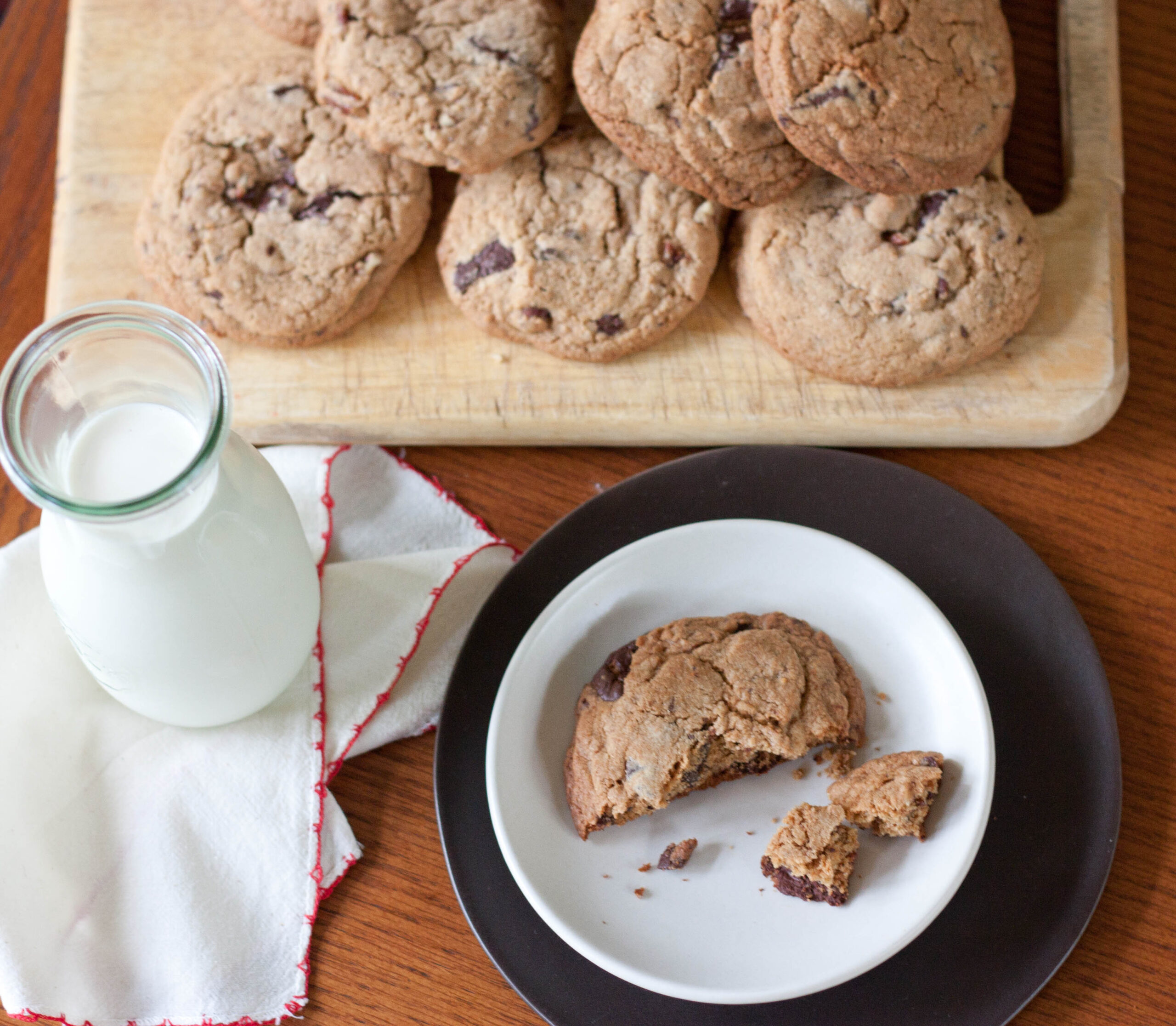 Besides the insanely creative recipes, Kim’s expert tips, and Quentin Bacon’s luscious photos, one thing I love about Kim’s approach is her playfulness. I’m a typical baker in that I like to measure, I’m precise, and I don’t love straying from a recipe the first time around (although I’m getting much better with this one). But Kim encourages adaptation and taking yourself less seriously in the kitchen. A little less stringent planning, perhaps. Use what you’ve got on hand. I took her advice with these cookies and threw in chopped pecans, and I’m taking her advice all the way to China and winging it just a little. Seeking out a bit of unplanned adventure, using what we’ve got on hand, following our instincts, and seeing what kind of trouble we can muster up. Count on the fact that I’ll fill you in. Until then…