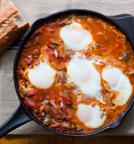 Recipe for Shakshuka, an egg, tomato, and pepper stew