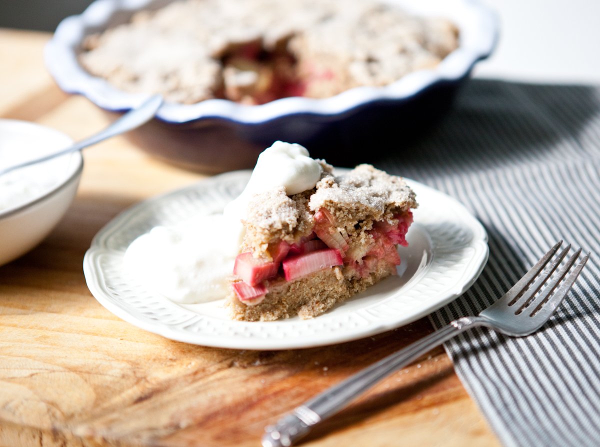 Bake for 60-70 minutes, or until the top is golden and the rhubarb is bubbly and quite soft. Allow cake to cool for 15 minutes after removing it from the oven. Slice in wedges, much like a scone. Serve warm with a generous dollop of whole-milk plain yogurt. As with many whole-grain baked goods, this cake is best enjoyed the day it’s made. If you do have leftovers, wrap well and keep at room temperature for up to 1 additional day.