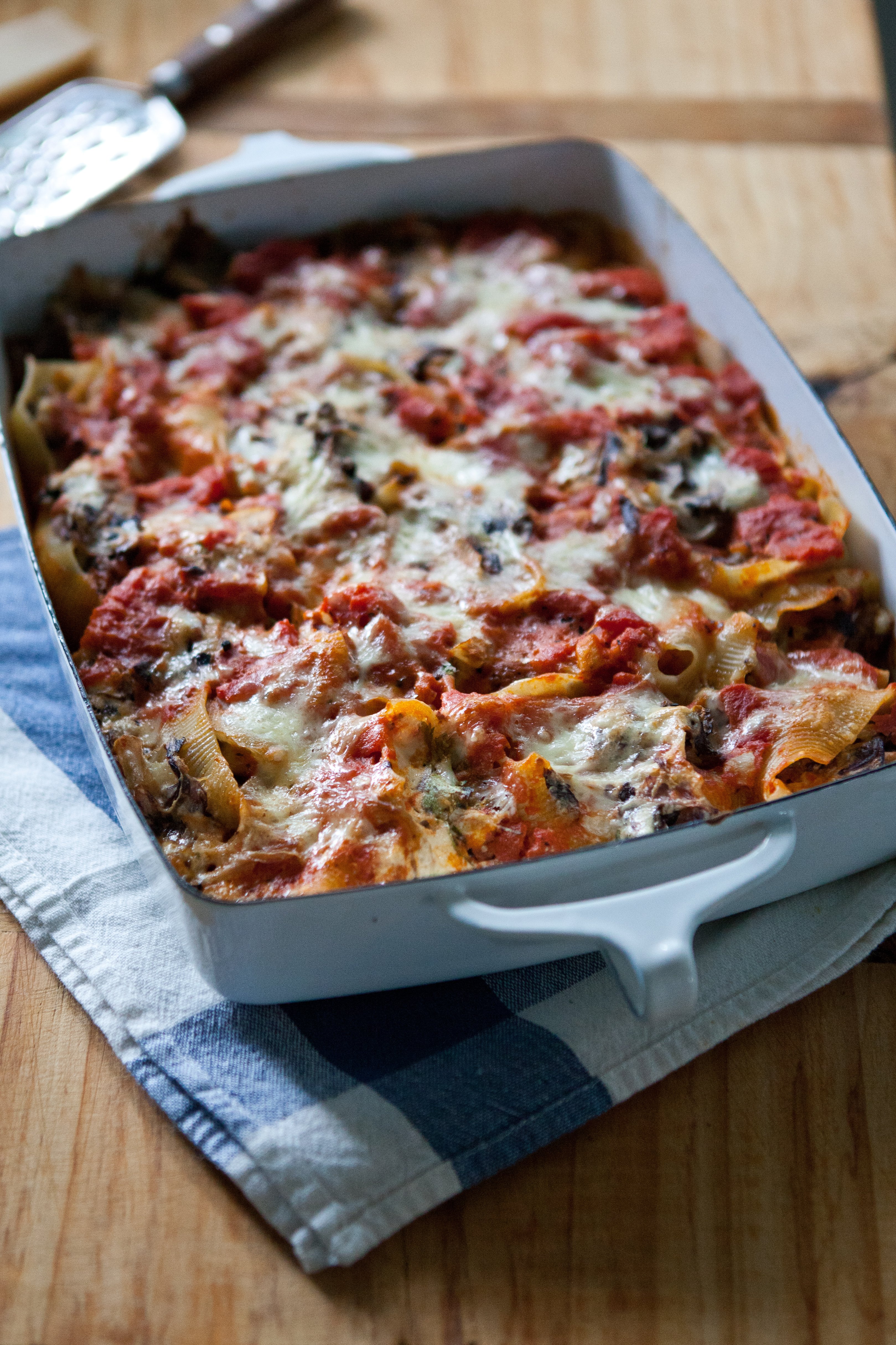 I’ve found in the last few weeks that comfort food gets its name for a reason: it’s what you really crave in stressful times. I haven’t had a good kale salad in awhile, but pasta, nachos and grilled sandwiches have been making the rounds. We just had these stuffed shells for dinner last night, and I hadn’t intended to blog about them, but Sam encouraged me to take a few photos along the way just in case it was blog-worthy and they turned out wonderful — the balance of flavors was spot-on with the sweet fennel and onion, bitter radicchio, and slightly nutty Fontina. I longed for a bit more sauce, so next time I’d heat up some additional marinara to serve on the side. Good comfort food for stressful times … or just anytime, really. I’m loving all the beautiful spring salads I’m seeing online right now, but sometimes a good baked, saucy shell is really what everyone needs more of, no?